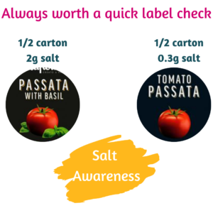 Some brands within the same category will vary considerably in salt content so always double check your store cupboard favs.