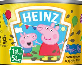 I would say Peppa Pig’s ideal viewer is aged 3. When my daughter was 3, Peppa Pig was our friend as I tried to feed her baby brother. But Peppa should really be for TV only as this tin gives nearly half of a 3-year olds salt intake for the day.
